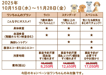 10月15日から、ワンちゃんの秋の健康診断キャンペーン が始まります!!